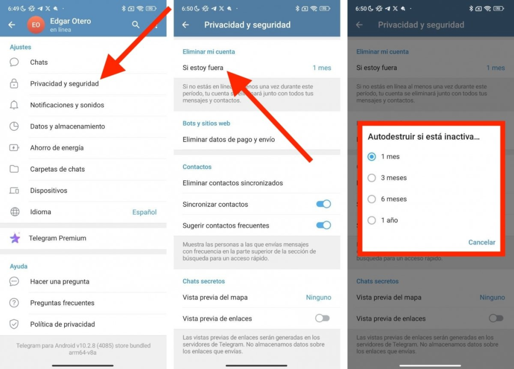 1. RESPUESTA DIRECTA: Tienes dos opciones principales para eliminar tu cuenta de Telegram. La primera es directamente en la aplicación (iOS, Android o desktop): ve a Configuración > Privacidad y Seguridad > y selecciona Eliminar mi cuenta. La segunda es a través del sitio web de Telegram en my.telegram.org/auth, donde inicias sesión y sigues un proceso similar. En ambos casos, la eliminación no es instantánea; puedes configurar un periodo de inactividad (1, 3, 6 o 12 meses) tras el cual se borrará automáticamente. Esto es útil si solo quieres una red de seguridad.